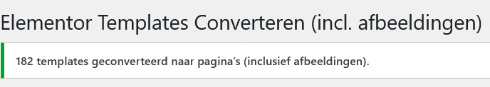 <p>Deze tool converteert al je Elementor templates naar pagina’s, en importeert de gebruikte afbeeldingen automatisch in de mediabibliotheek.</p>