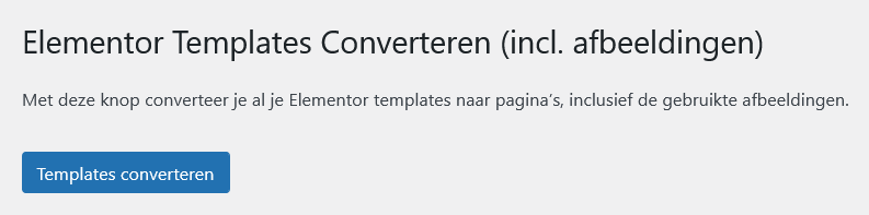<p>Met deze knop converteer je al je opgeslagen Elementor templates naar gewone pagina’s.</p>